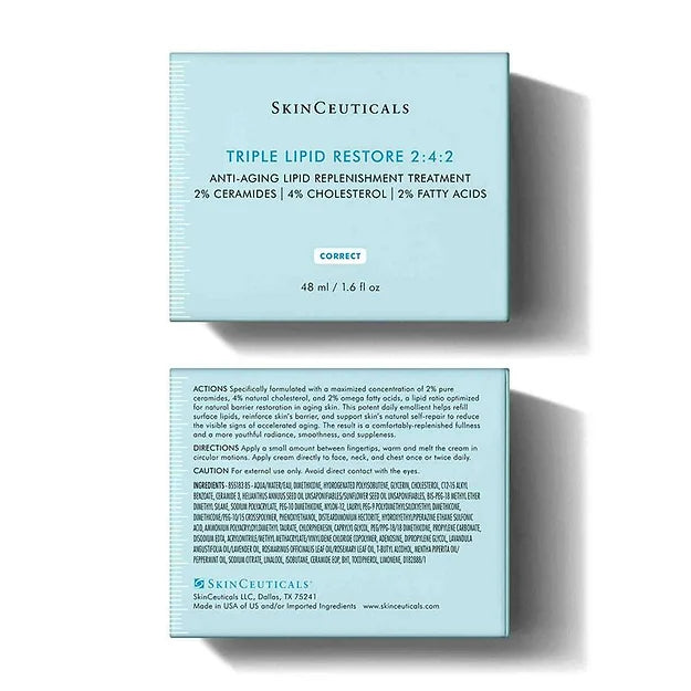 Triple Lipid Restore 2:4:2 is an anti-aging cream that contains the optimal and patented lipid ratio of 2% pure ceramides 1 and 3, 4% natural cholesterol, and 2% fatty acids, which is proven to nourish skin and correct signs of aging. This unique lipid-enriched cream contains the first 2:4:2 cholesterol-dominant ratio to help restore skin’s external barrier and support natural self-repair, while potently nourishing aging skin for improvement in the visible appearance of skin smoothness, pores, and overall radiance.